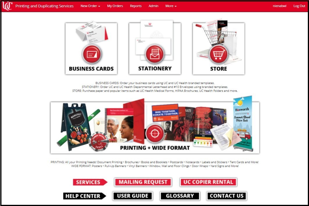 These instructions are specific to UC/UC Health Customers. Non-UC/UC Health Customers should order using the instructions for Print Order.