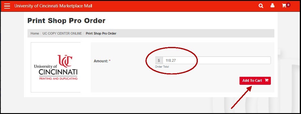 When you reach the mail page of our uStore, enter the amount on your order into the Order Total field, then click Add To Cart.