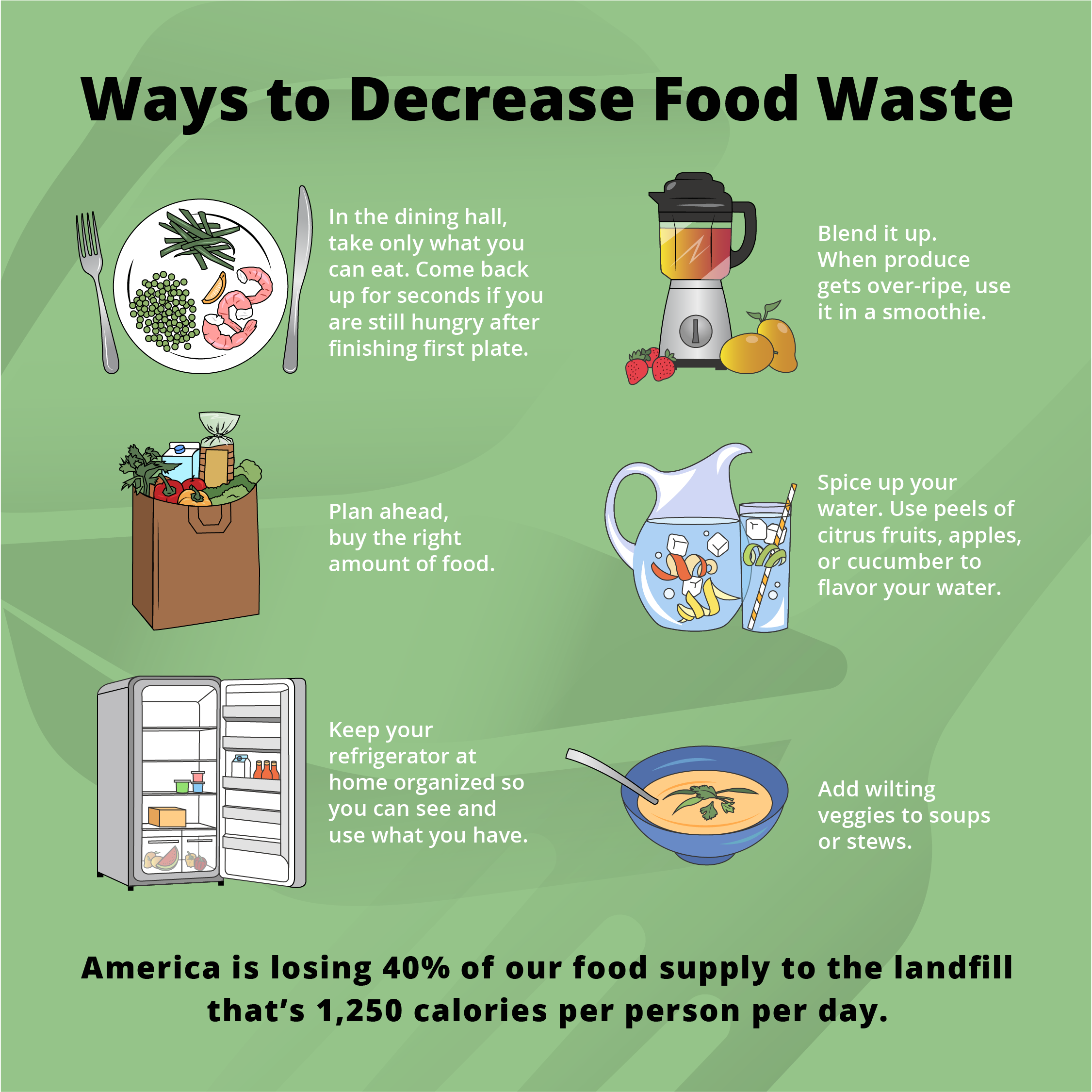 - Make sure you plan ahead and buy the right amount of food so you don't waste it.