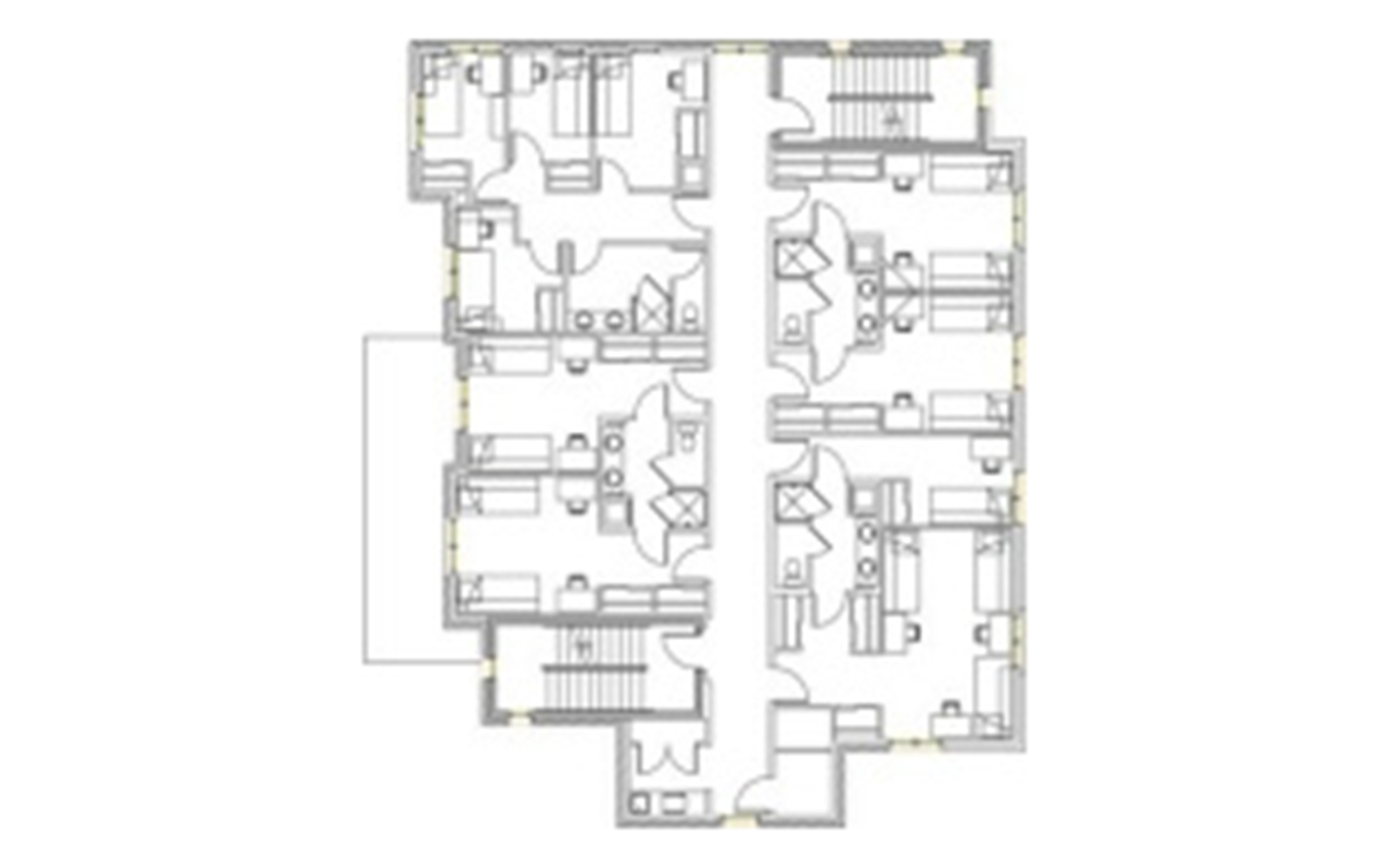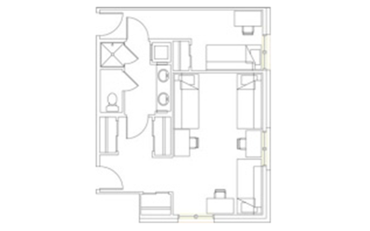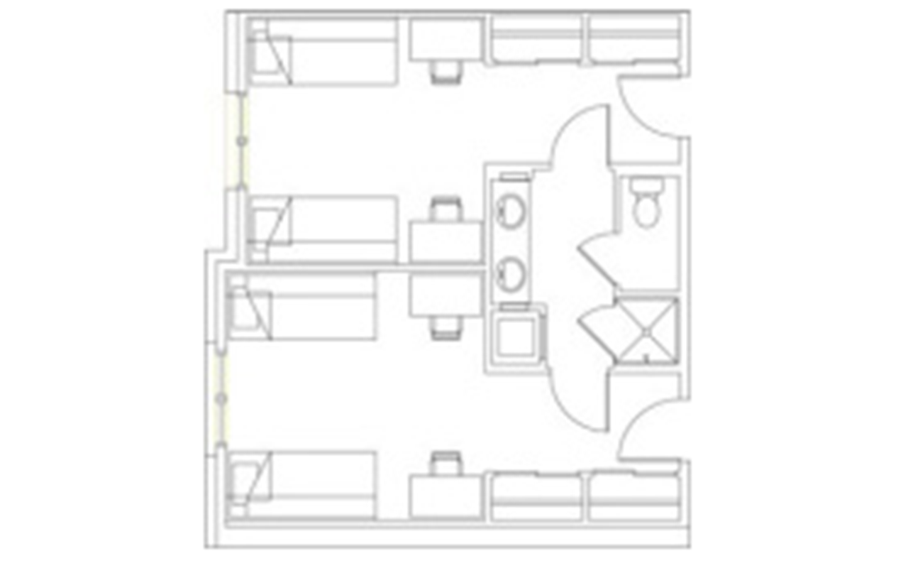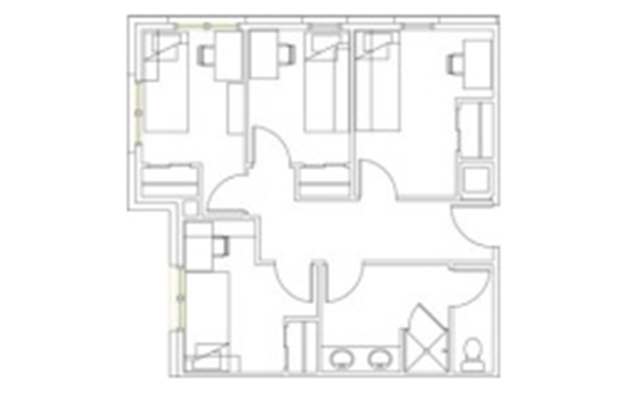 There are a variety of room types available at Stratford Heights. Students have the option to choose four-person suites in four configurations: