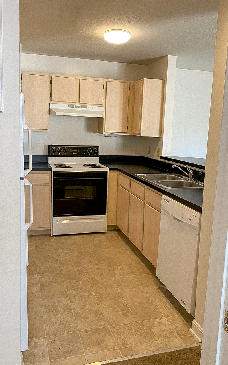 - Kitchen with dishwasher, garbage disposal, refrigerator, electric range (microwave not provided)