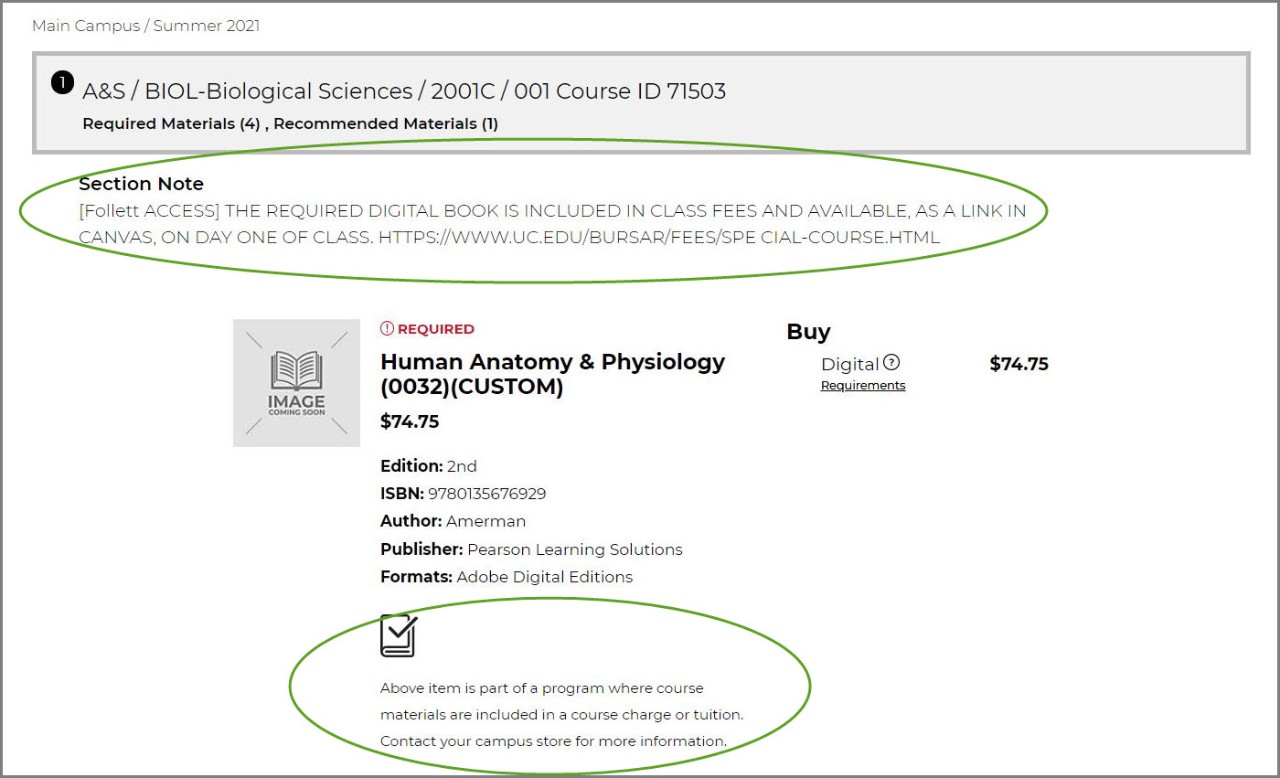 Do you have a section note in a course that tells you the required material is included in your class fees? You don't have to shop for those materials!