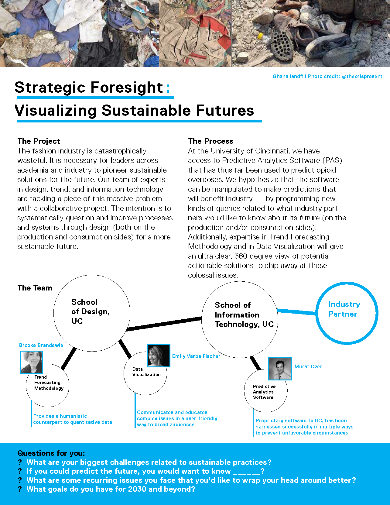 They believed Ozer's Predictive Analytics Software (PAS) could be manipulated to predict behaviors in areas that can lead to mass production and consumption. This will allow leaders within DAAP and beyond to make better choices that will sustain our environment and to smart-produce their materials.
