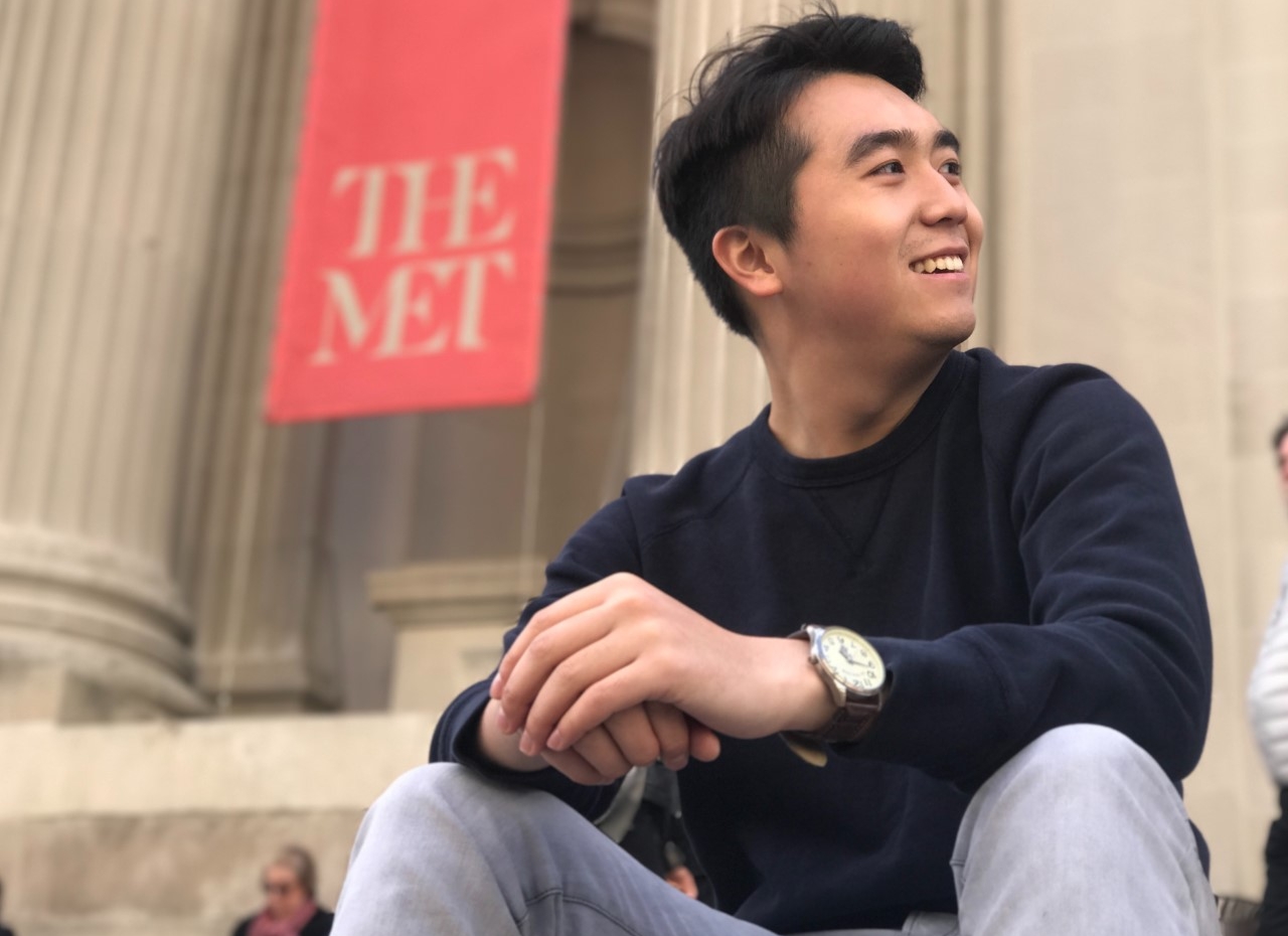 Mark Woo smiles for a photo outside the Metropolitan Museum of Art in New York City.