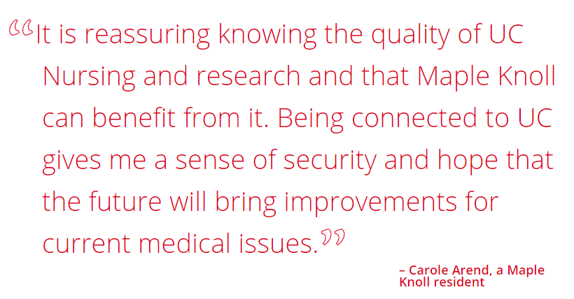 With that oncoming “silver tsunami” in mind, the University of Cincinnati College of Nursing has established a partnership with a Cincinnati retirement community, Maple Knoll Village, to train nursing students on the latest technology to provide the best care for this aging population.
