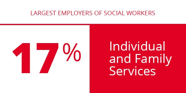 - In this sector, social workers address healthcare, behavioral health, criminal justice, social services, and child welfare issues. Professionals in this industry earn an average annual salary of $61,190.