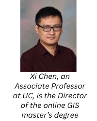 Xi’s journey from hydrologist to the realm of geospatial technology reflects the inter-connectivity of these two fields. As an instructor and the program director for UC’s online GIS master’s program, Xi’s understanding of the invaluable role GIS plays inspires our students. Do you feel inspired to learn more about our highly regarded program? Contact a UC Enrollment Services Advisor online today or call (833) 347-5495 Monday through Friday, 8 a.m. to 5 p.m. Eastern, to speak directly with a representative. Xi and UC’s other GIS program faculty look forward to meeting you.