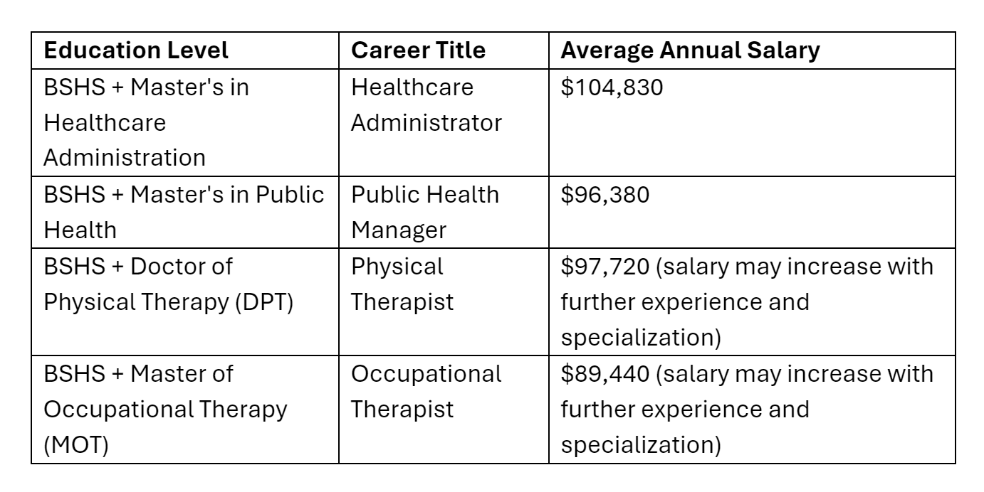 Health science is a vast and dynamic field encompassing various disciplines that contribute to human health and well-being. It delves into the biological, social, and environmental factors affecting individuals and communities. A Bachelor of Science in Health Sciences (BSHS) program equips you with a comprehensive understanding of these interlinked aspects, preparing you for a fulfilling career in the ever-evolving healthcare landscape. The U.S. Bureau of Labor Statistics (BLS) projects 19% job growth in healthcare occupations between 2021 and 2031, much faster than the average for all occupations. This growth is attributed to an aging population and increasing demand for preventive and chronic care services. It's important to remember that salary potential varies depending on several factors:
