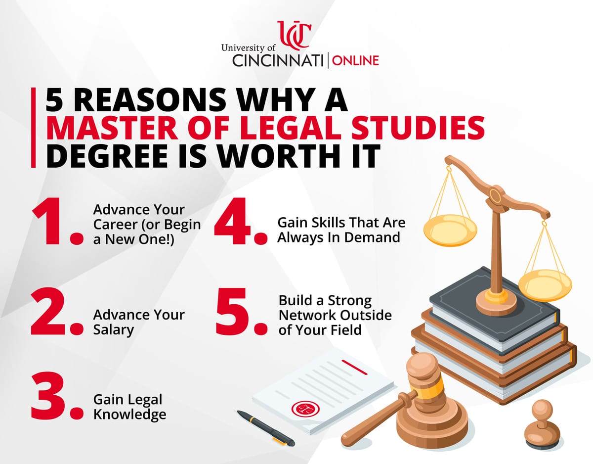 The University of Cincinnati’s fully online, fully asynchronous Master of Legal Studies program is ready to help you open the door to a world of new possibilities. With flexible scheduling and no campus visits, you can study without interrupting your current professional and personal life. UC’s comprehensive curriculum includes Business Law, Risk Management, Compliance, Legal Research and Communication, and many more courses that help you understand and react to today’s most important legal issues and trends. Begin today! Apply to UC’s affordable and flexible Master of Legal Studies program.